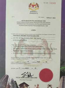 實夢旅行社FANTASTIC DREAMS VACATION SDN. BHD. 是否也意味着“梦幻般的假期”?本公司持有马来西亚政府授予的旅行社业务执照,包括国内旅游管理业务以及境外旅游管理业务。